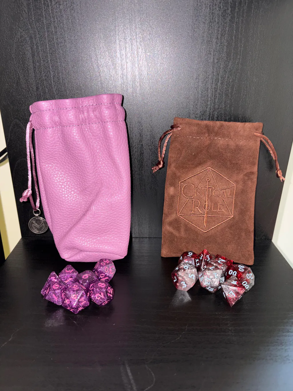 - Includes a brown velveteen drawstring bag with an embroidered Critical Role logo.